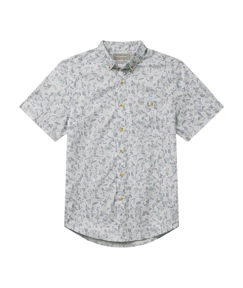 The Signature Baja Shirt in the Hooked on Camo print adds a coastal twist to classic camo, featuring subtle redfish hidden throughout the design. Made from a lightweight, breathable performance woven with 2-way stretch, it’s built to keep you cool and comfortable all summer long. Finished with a button-down collar and a chest pocket with a woven SSCO logo and button closure, this in-house print is made for days on the water and everything after.